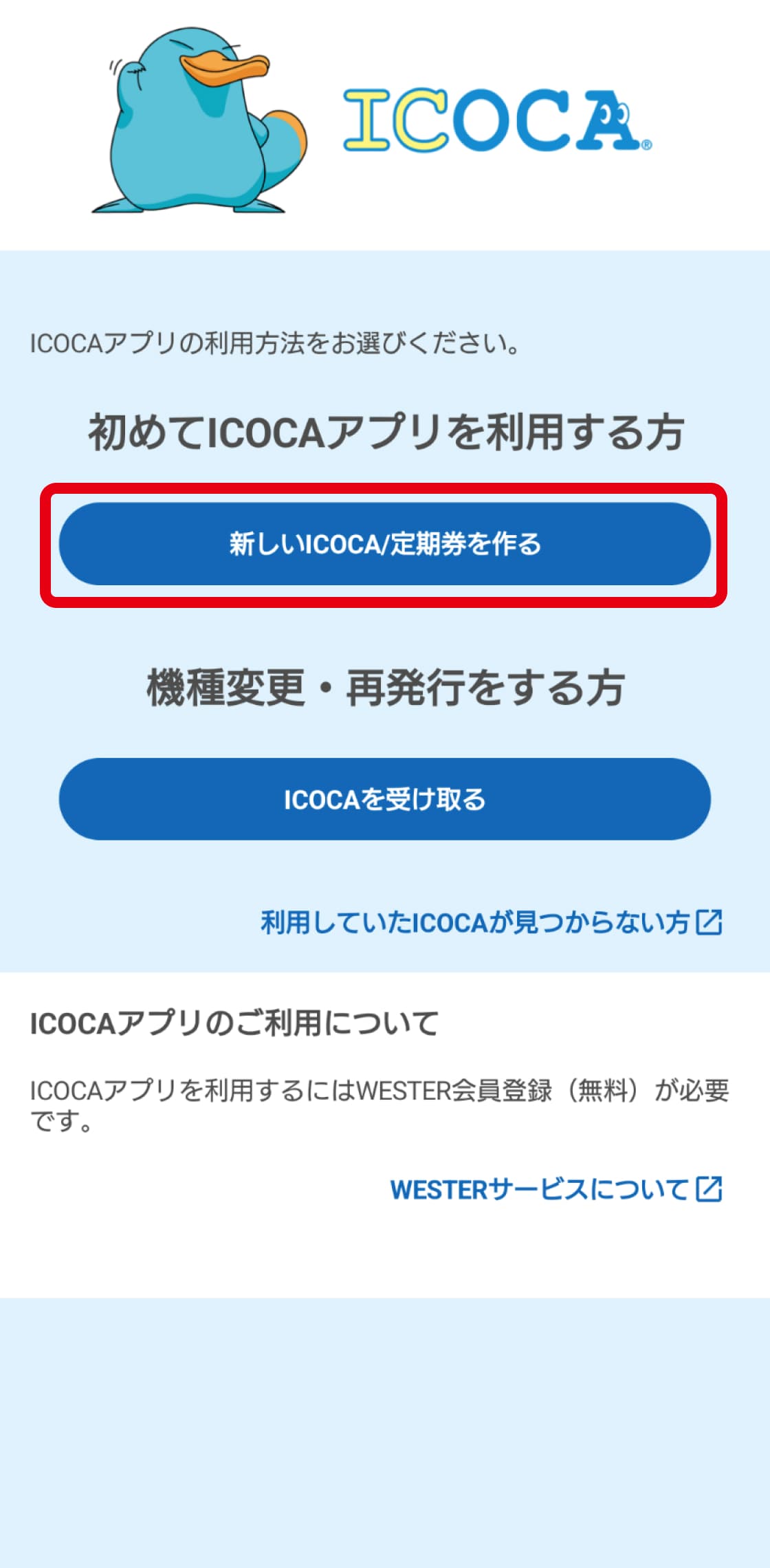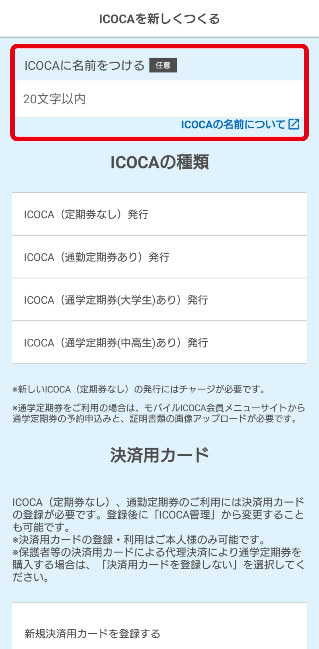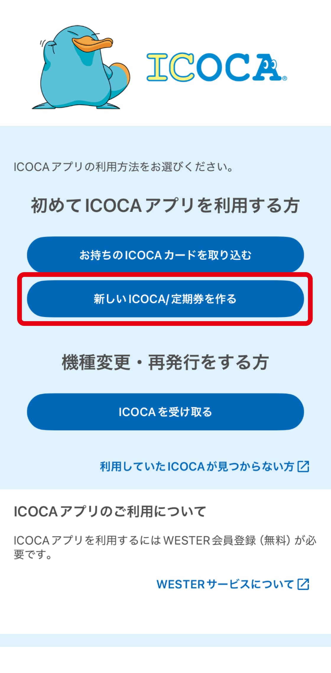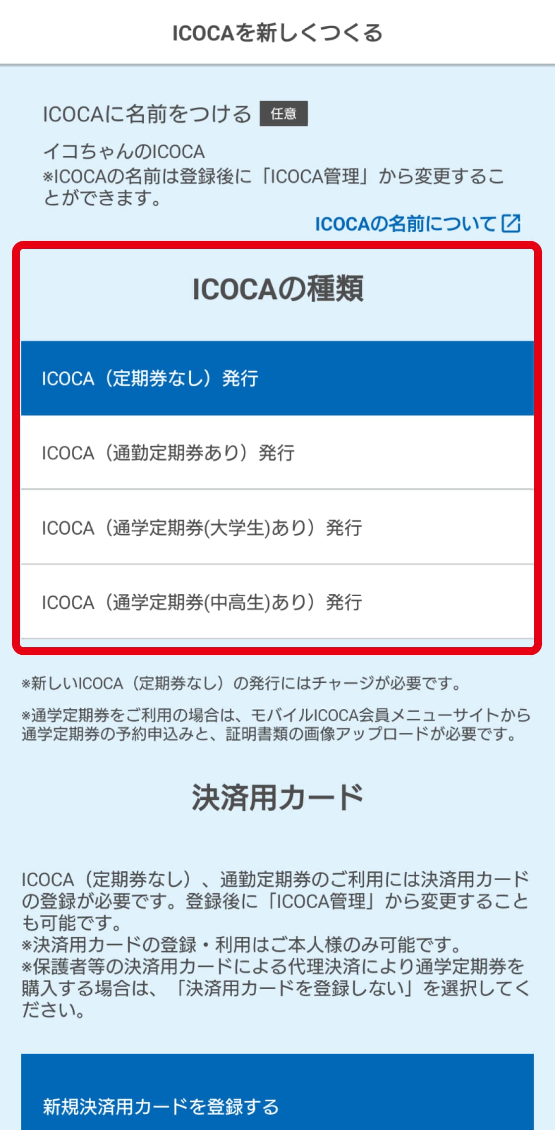 新規登録はこちらICOCAアプリで