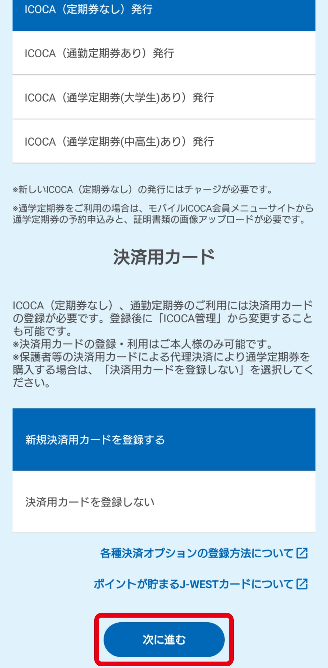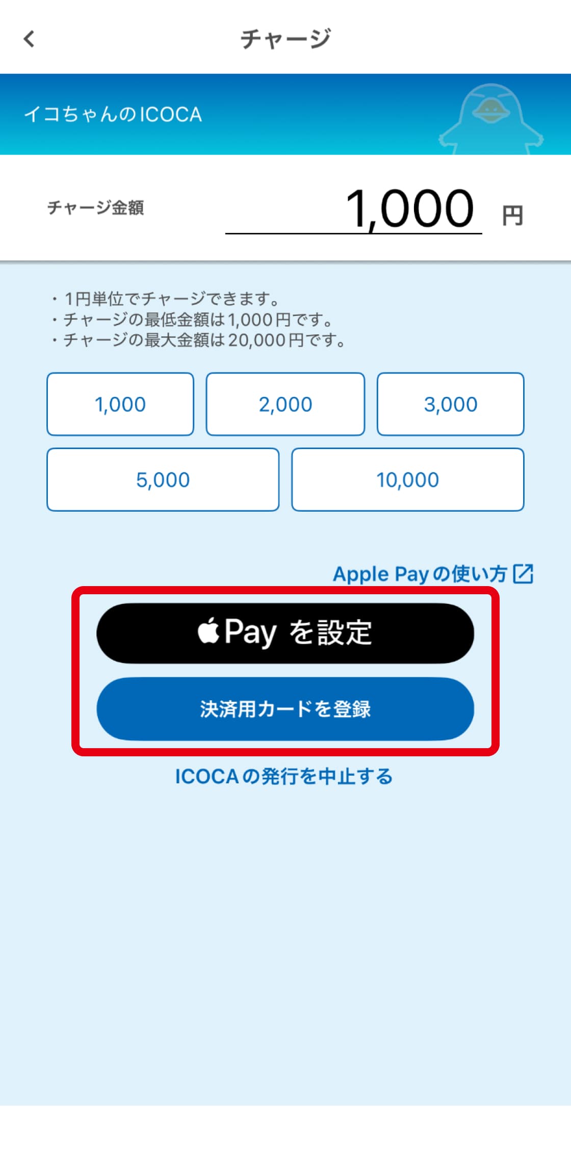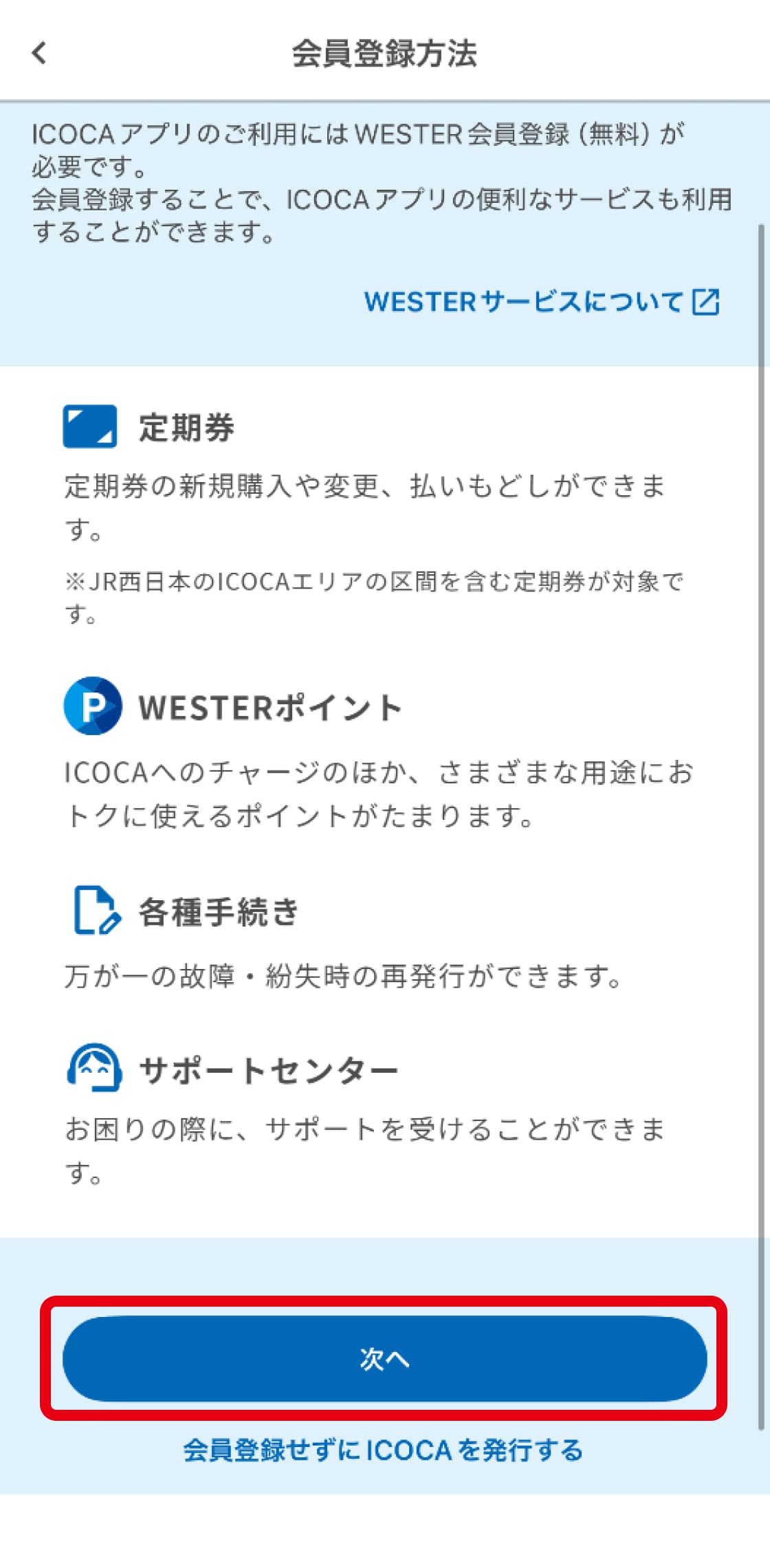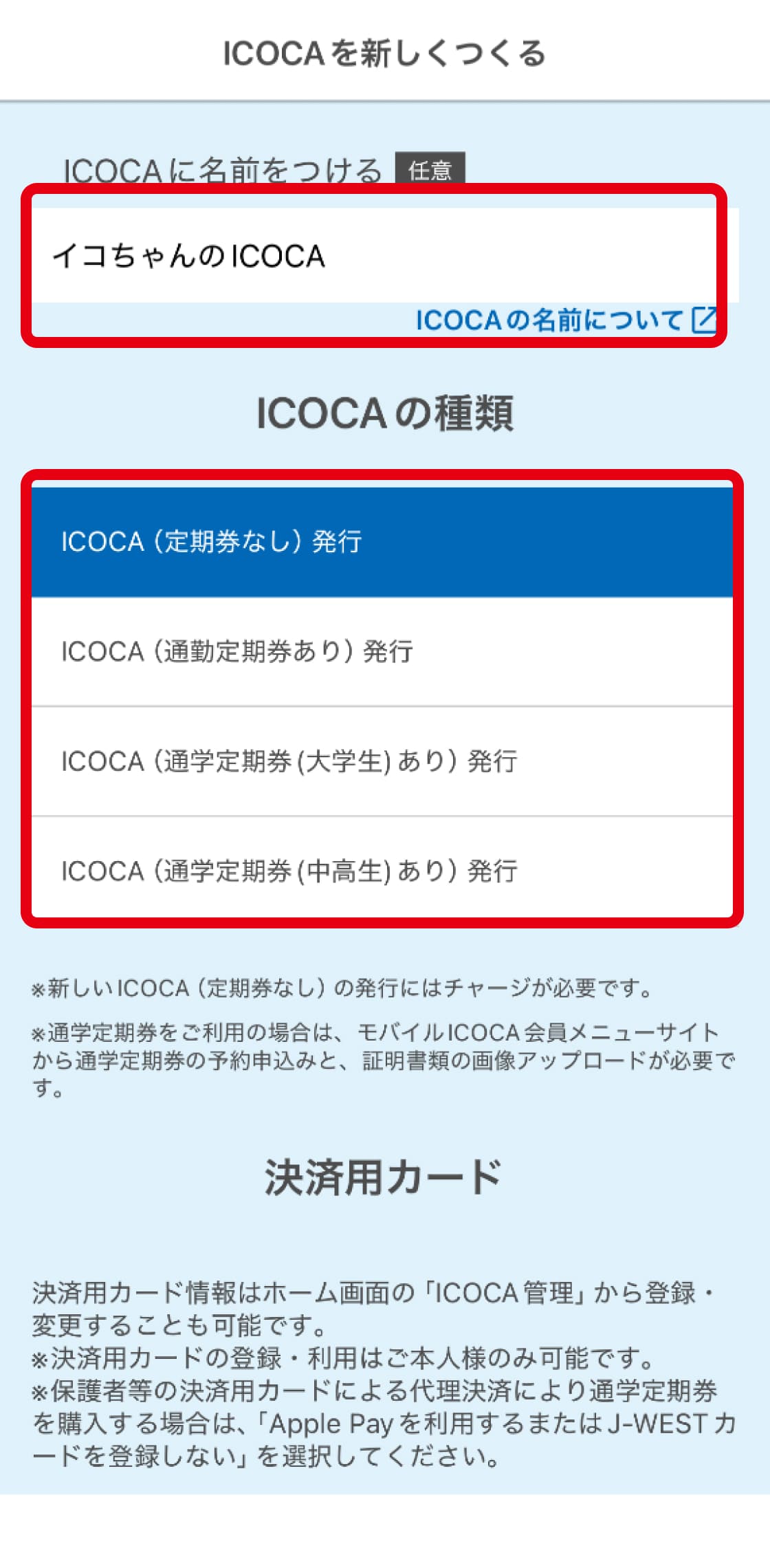 新規登録はこちらICOCAアプリで