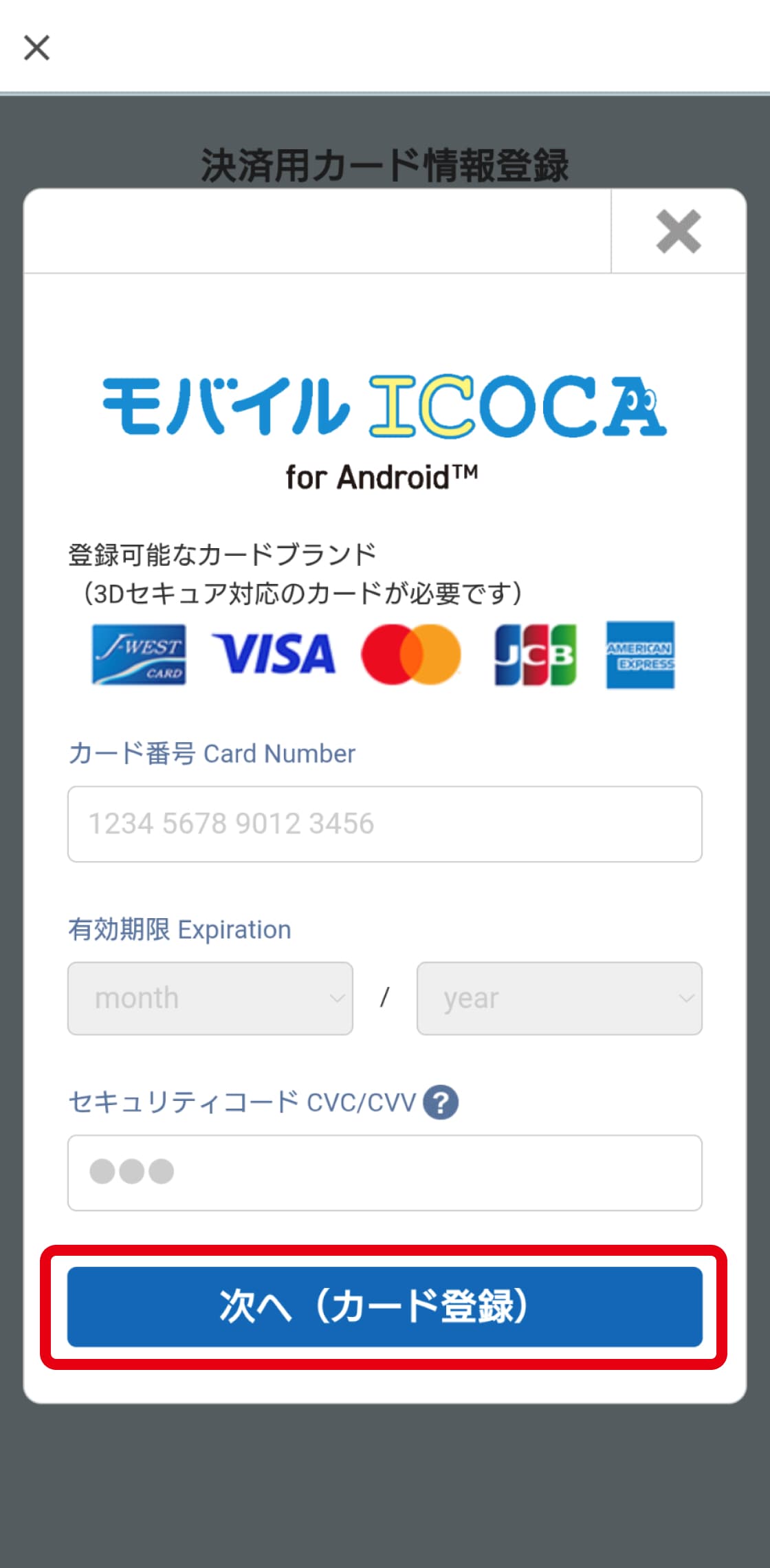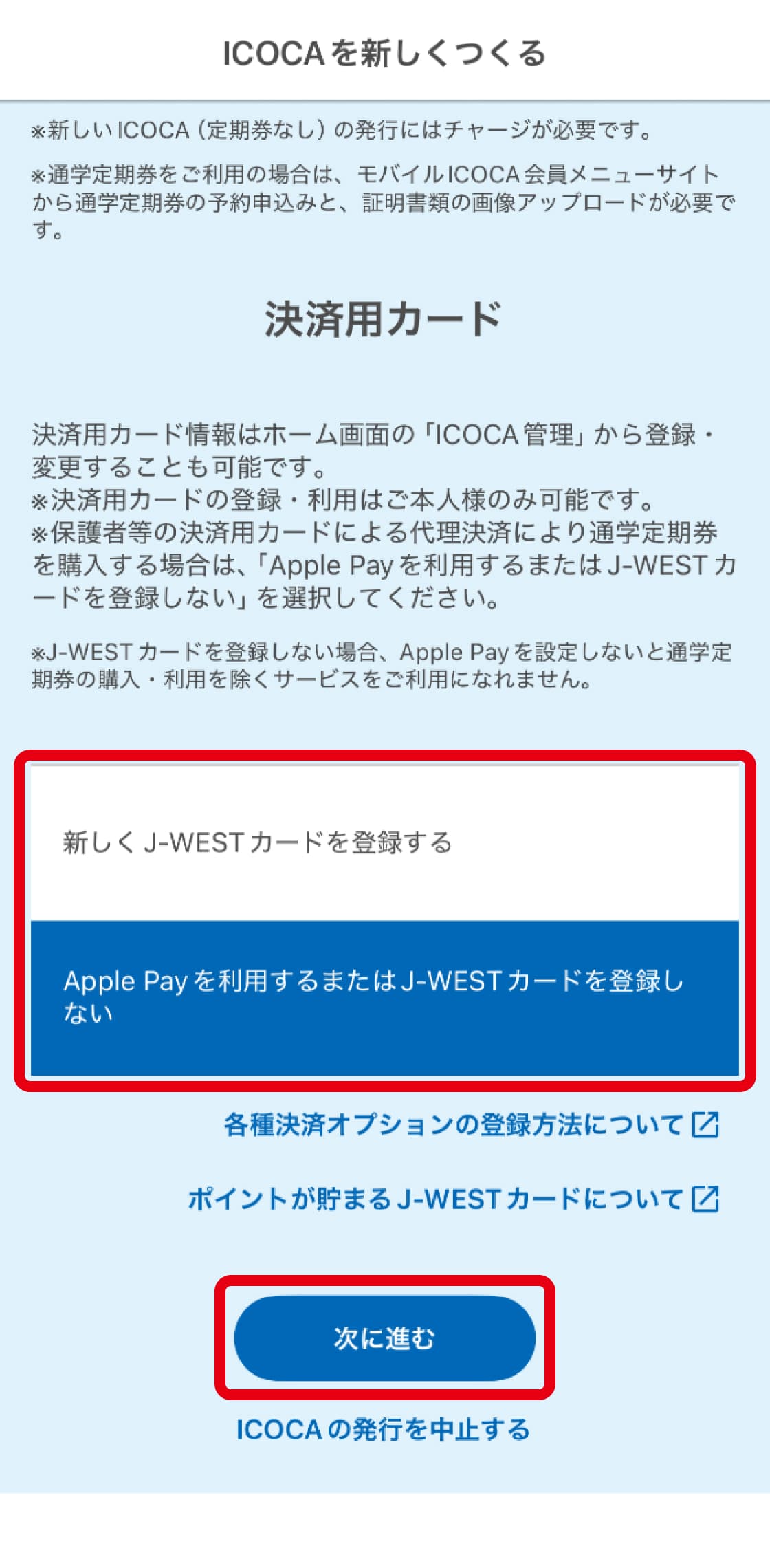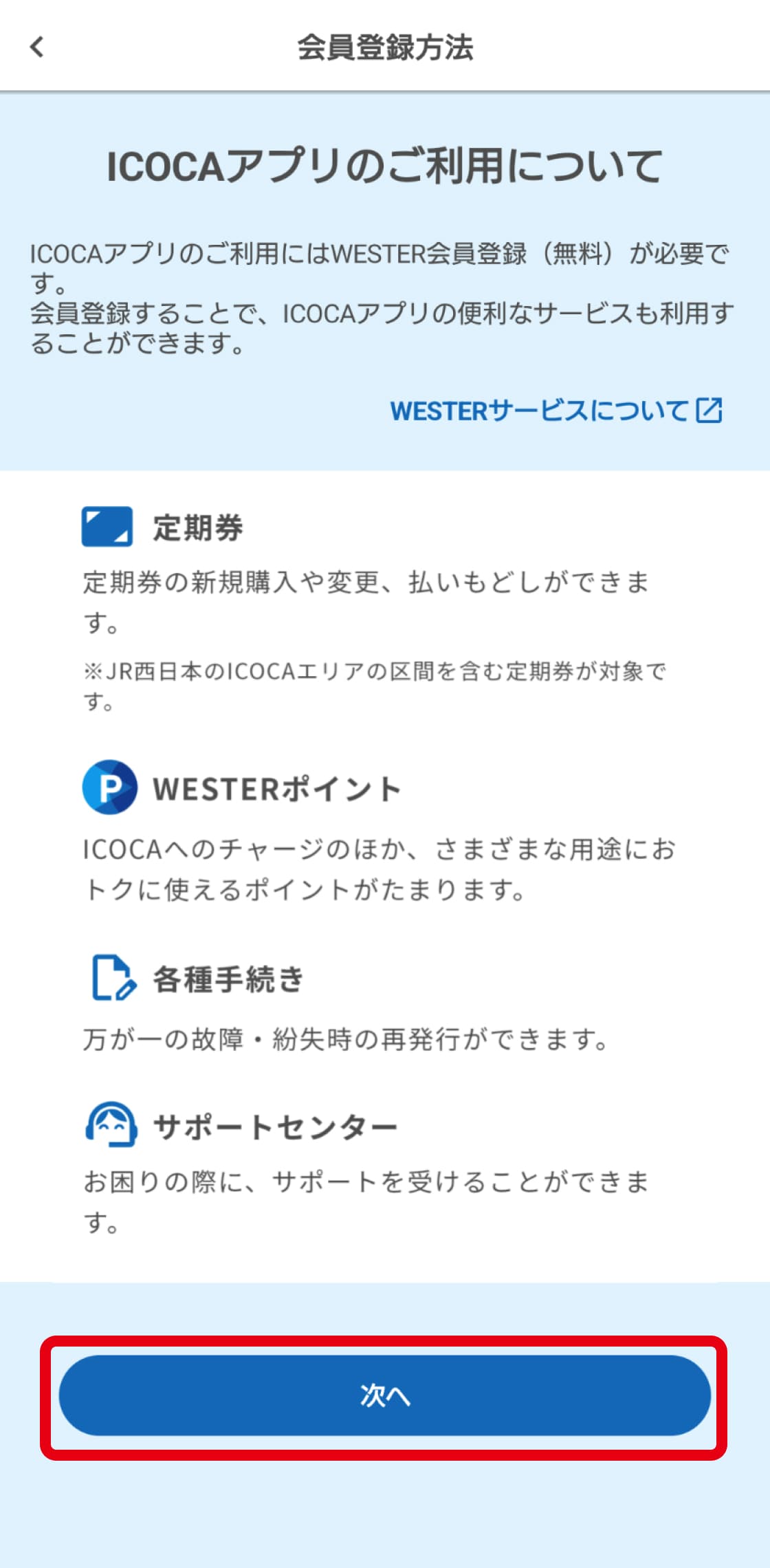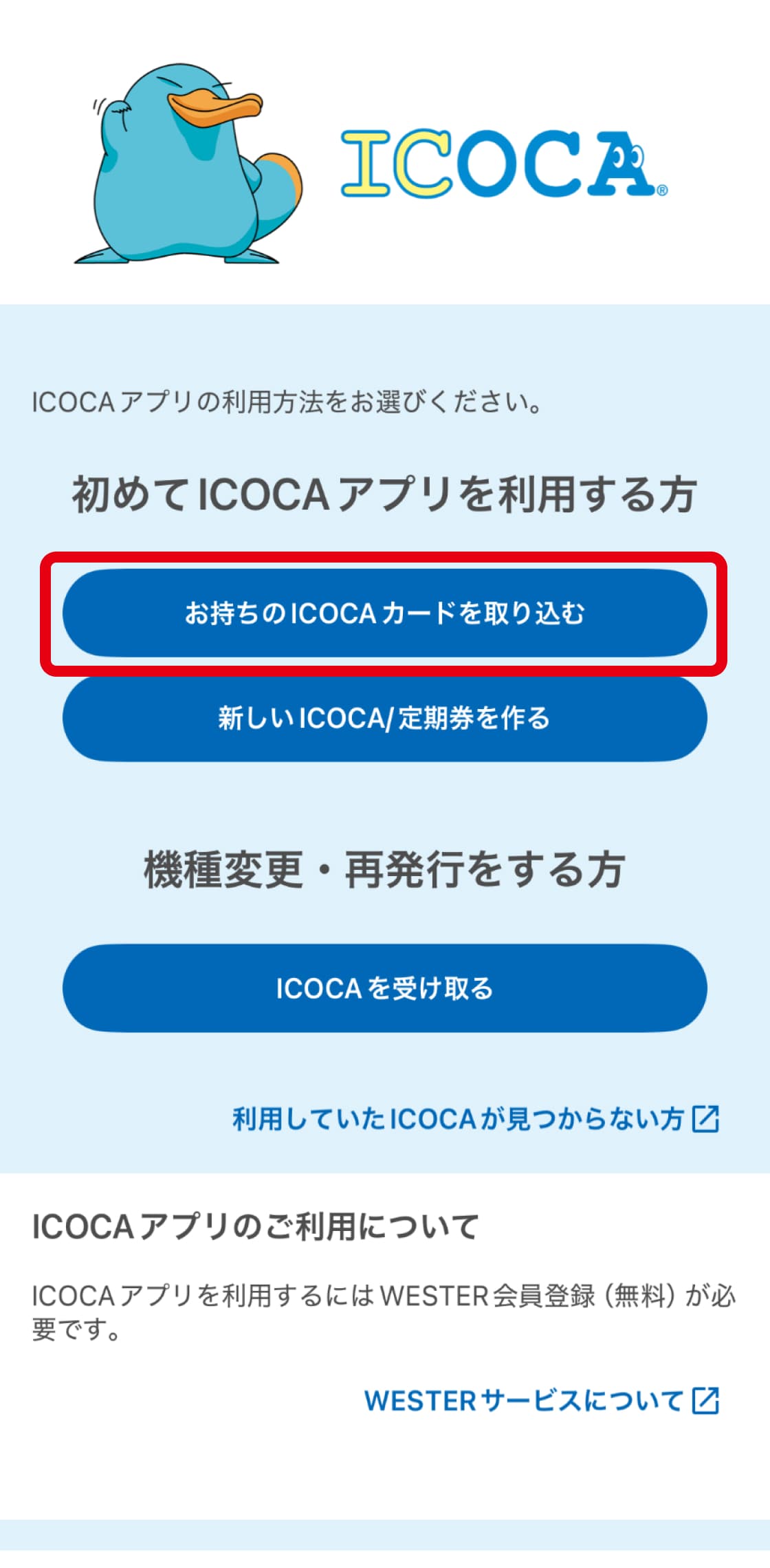 ※VISAブランドのJ-WESTカードをご利用の方は、ICOCAアプリをダウンロード後、アプリにカードをご登録ください。