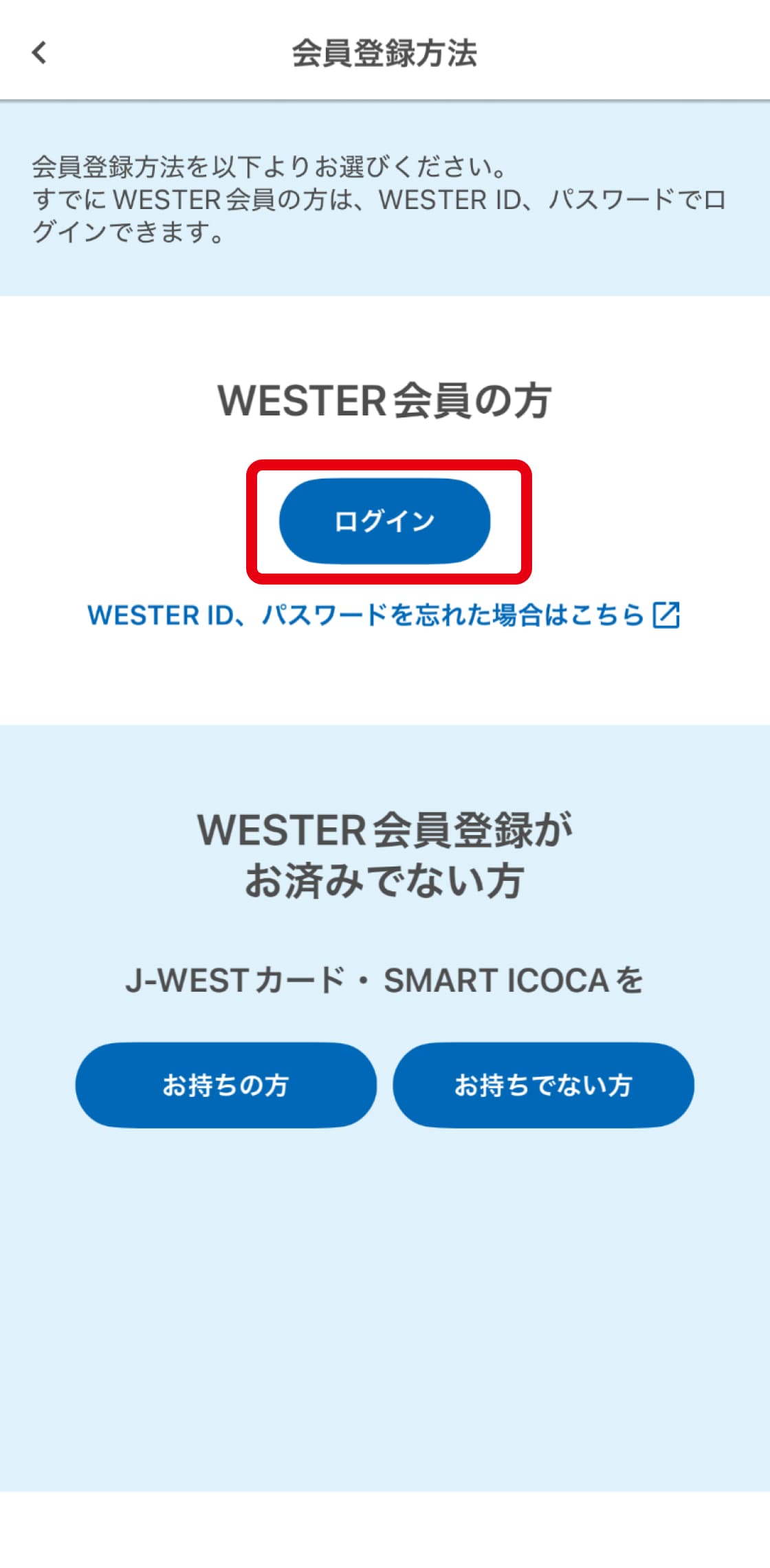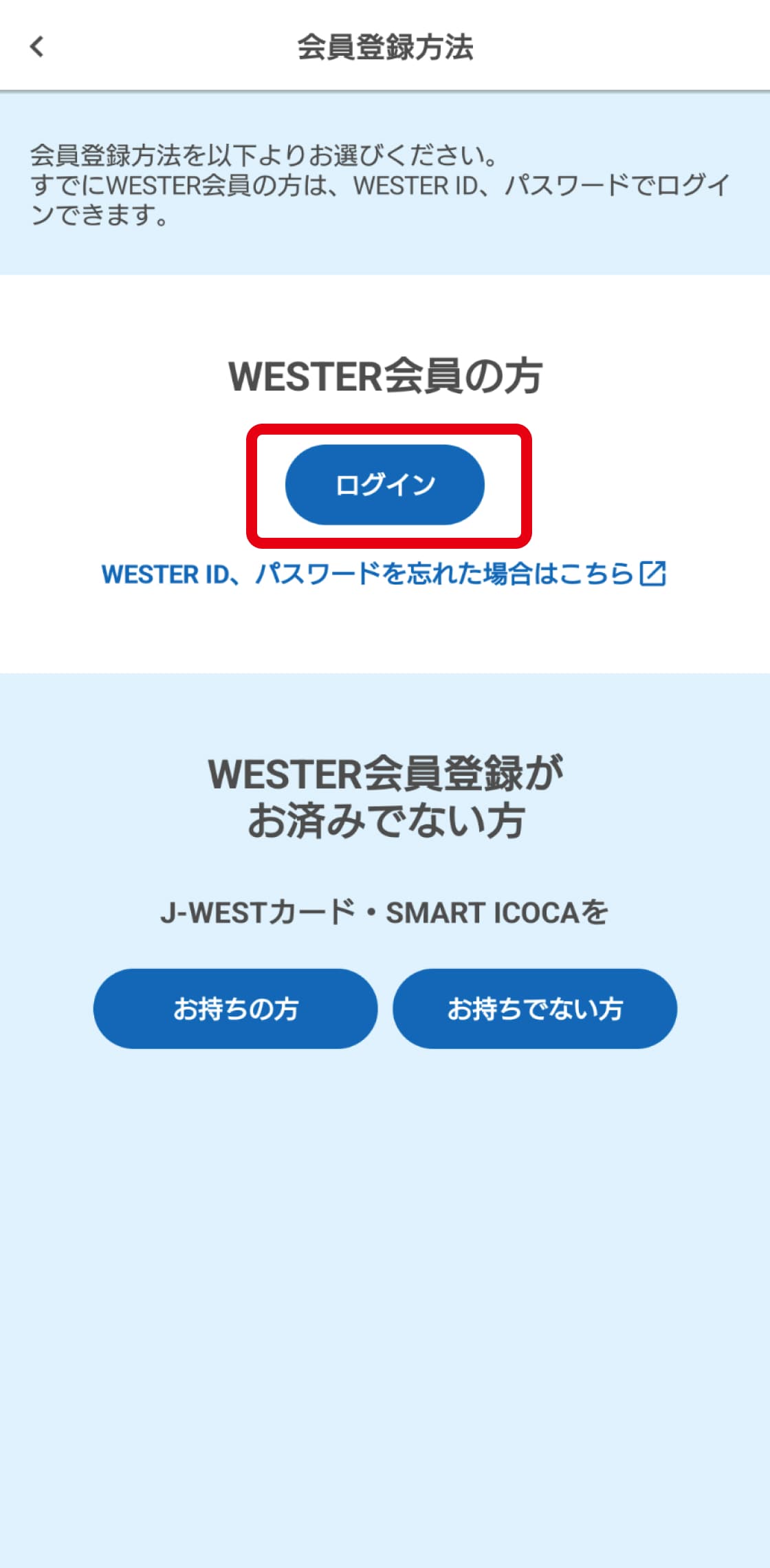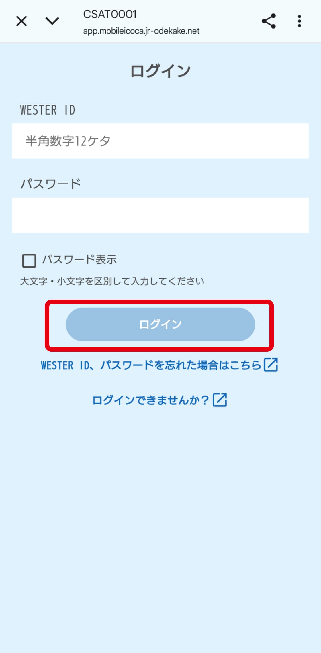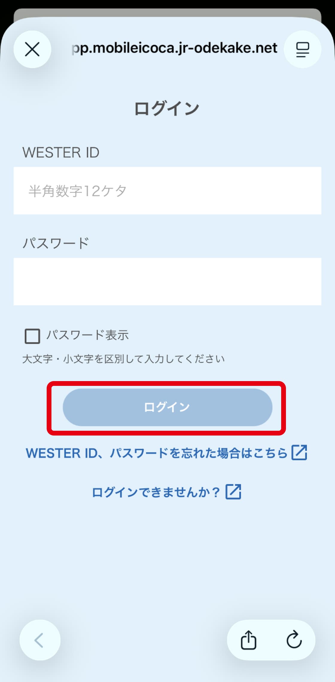 - 正しいWESTER ID/パスワードを入力しているのに、ICOCAアプリにログインできない。