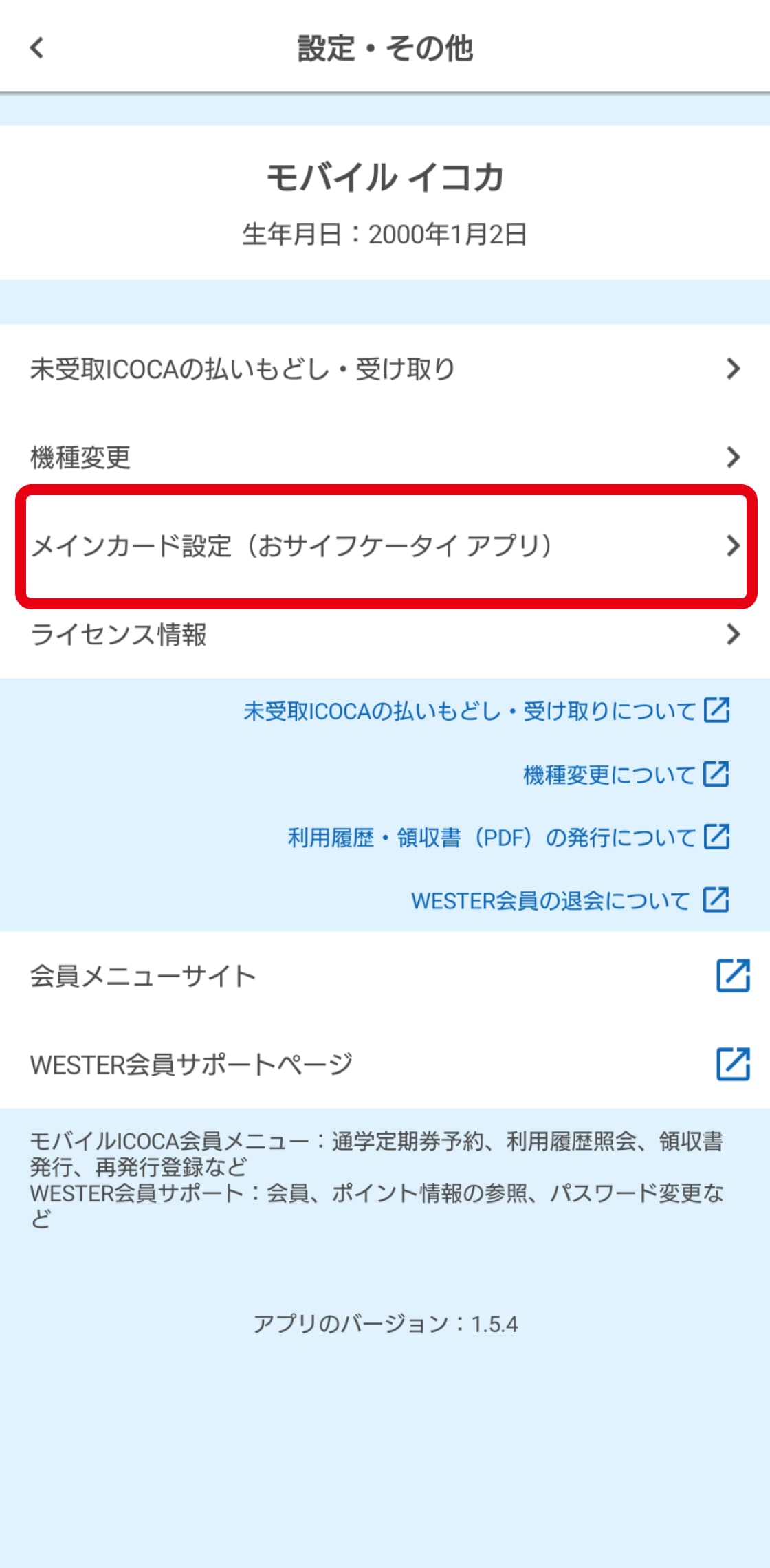 [会員情報一覧・変更メニュー]内の[現在のお客様情報]に「モバイルICOCA / Apple PayのICOCA」が表示されていない場合、そのIDは別のIDです。■WESTER会員サポートへのアクセス