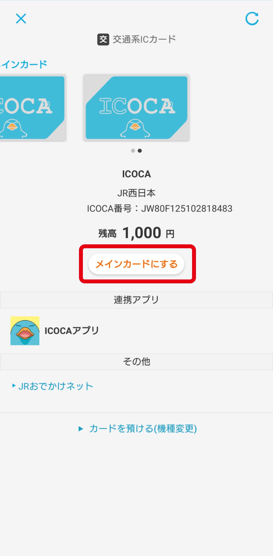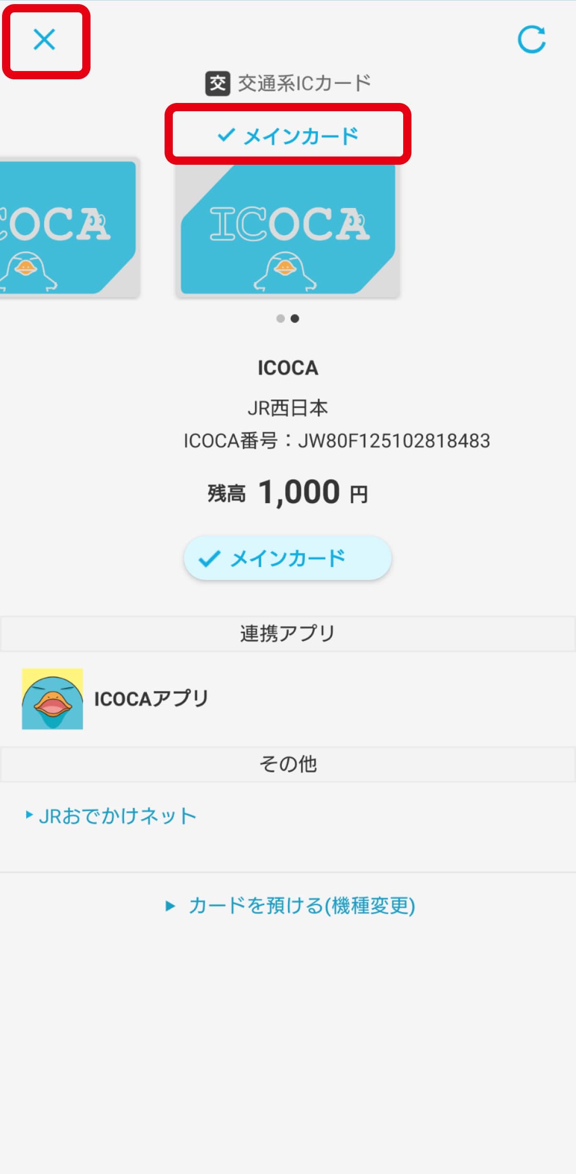 ICOCAアプリから