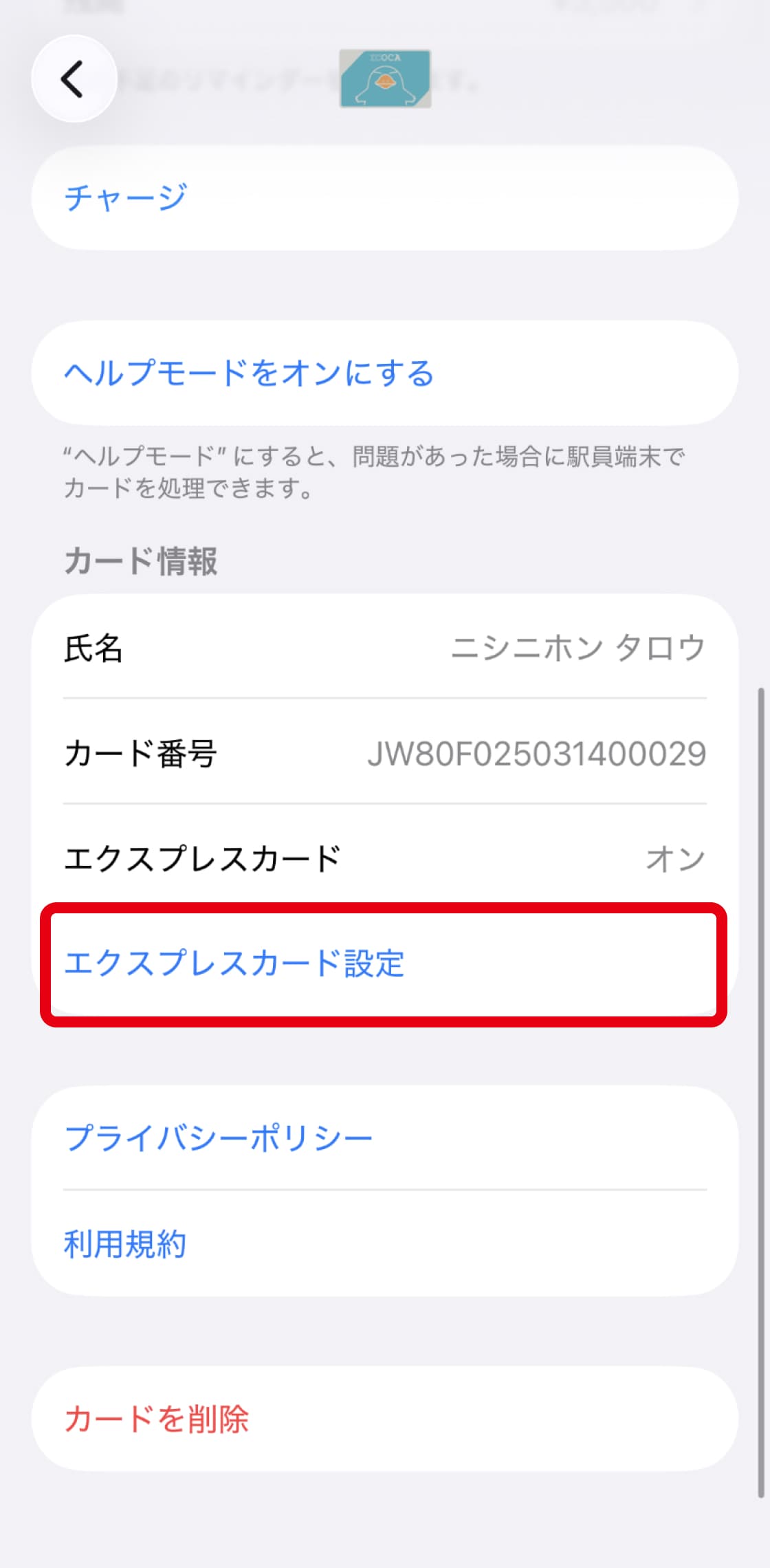 エクスプレスカードの設定