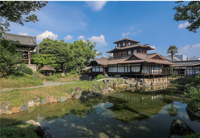 世界遺産・西本願寺は、浄土真宗本願寺派の本山で正しくは「龍谷山本願寺」。数多い国宝・重要文化財の建造物のなかでも、飛雲閣(国宝)は、鹿苑寺「金閣」と慈照寺「銀閣」と共に「京の三名閣(三閣)」に数えられる名建築である。不規則な中にも巧みに調和が保たれた非対称の姿形や、全体的に柱が細く障子が多いため空に浮かぶ雲のようだということから名づけられた。周囲に広がる約4900㎡の庭園「滴翠園」(名勝)には、田舎家風の外観の茶室「澆花亭」や四阿「胡蝶亭」などが建つ。