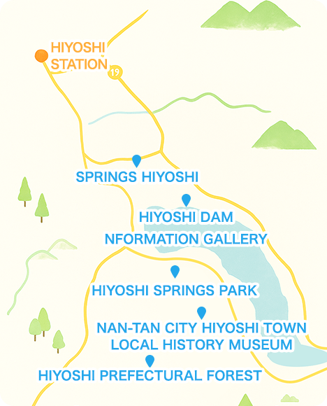 This is the hub of Hiyoshi, where you'll find hot springs, local restaurants, and farm direct shops. Stop by for a lunch made with local veggies and soak your tired feet in the hot spring foot bath.