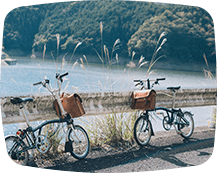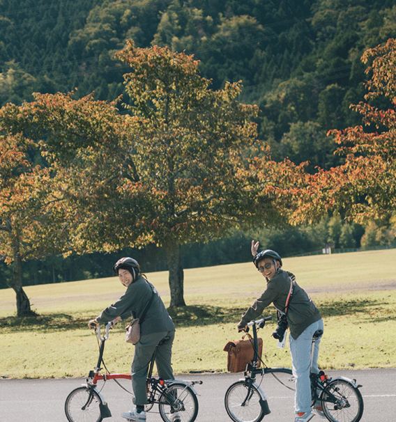 折りたたみ自転車で日吉ダムや桂川沿いを走りながら、四季折々に表情を変える里山の風景をめぐります。