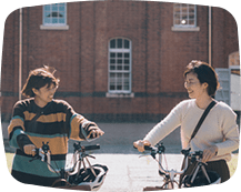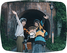 折りたたみ自転車で西舞鶴の古い町並みを抜け、 東舞鶴の赤れんが倉庫群や港エリアへ。歴史の移り変わりを、風を感じながら体験します。