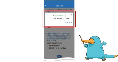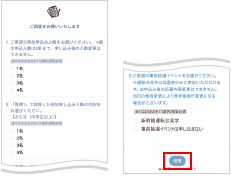 ※送信ボタンを押した後は申込内容を修正できませんので、ご注意ください。 - ④アンケート回答後に「お申込み完了」の画面が出たことを必ず確認してください。