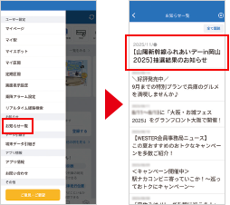 - ②入場受付時にWESTERアプリのお知らせ一覧から「当選通知」の画面をご提示いただきますので、当日ご参加されるグループの代表者様が必ずお申込みいただきますようお願いいたします。