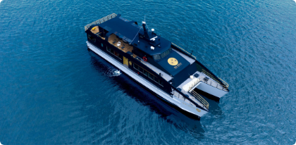 ●船内には瀬戸内海を知り尽くしたコンシェルジュが同乗し、島々の魅力や歴史を解説するので、せとうちの魅力を目で楽しむだけでなく、耳で聞きながらも楽しめます。