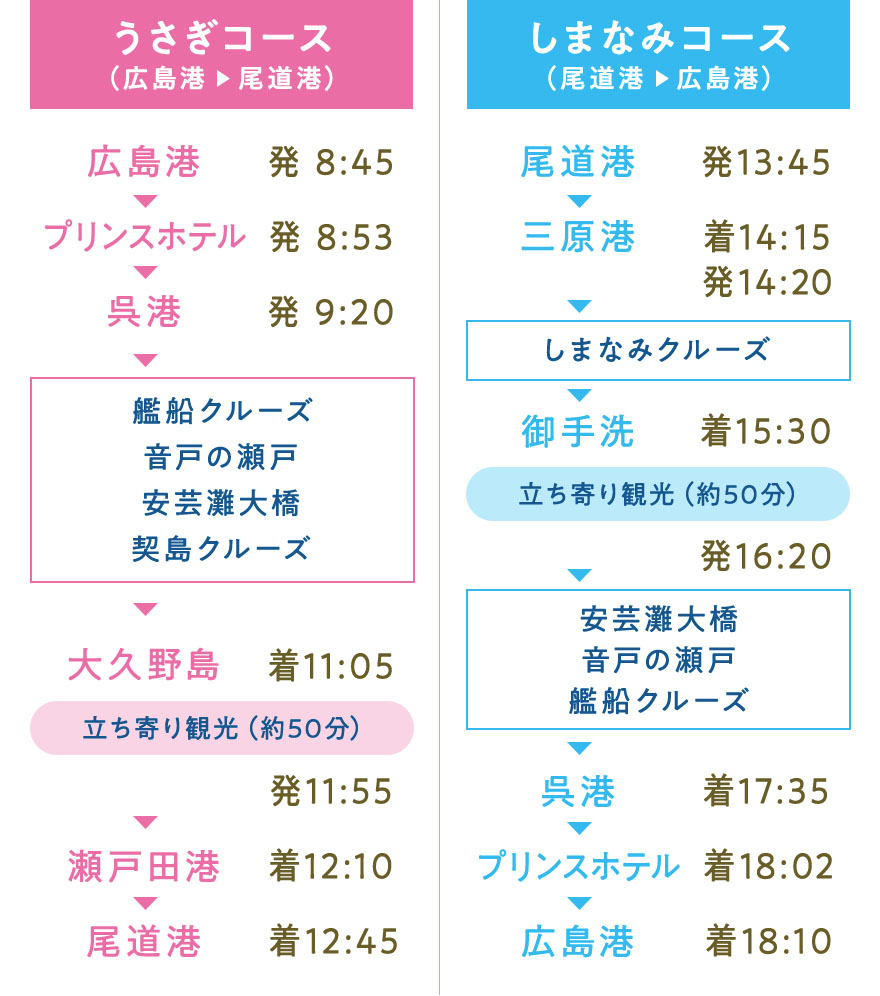 広島港(宇品)と尾道港を結ぶ、とびしま海道・しまなみ海道エリア(芸予諸島エリア)