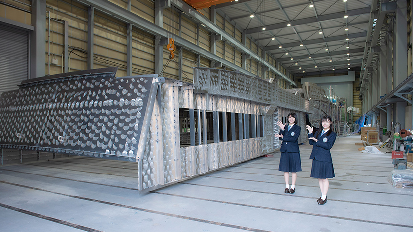 大谷さんも「船の外側が何も塗られておらず、金属がピカピカ光っているのを見ることができて、船が人の手で一からつくられているんだなと実感しました。大きな上部構造が軽々と持ち上がって設置されるまでがあっという間で、とっても驚きました!」と大きな目を輝かせていました。