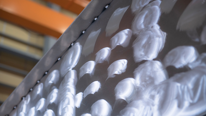 「船体は薄いアルミの板でできていて、その厚みは2〜4ミリメートル程度です。そこで、変形しないようこのようなリブ(補強材)を入れるんですよ」とスタッフの池内さんが教えてくれました。