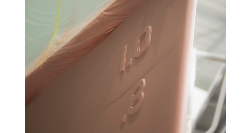 さすがアルミ船舶、ロゴもアルミ製です。レーザーカッターで切断された立体的なロゴが目立ちます。