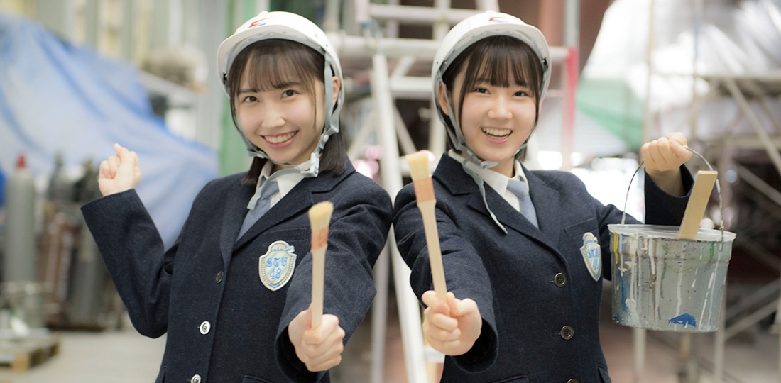 はい、それでは今日のメインイベント、船名部分の“A”の塗装をSTU48メンバーのお二人に塗ってもらいます。