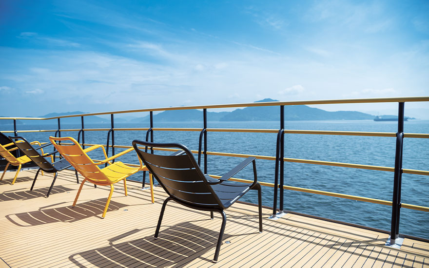 ● An onboard concierge fully versed in the Seto Inland Sea provides explanations of the history and appeal of the islands. This special service enriches visual appreciation of the cruise with detailed descriptions of Setouchi enchantments.