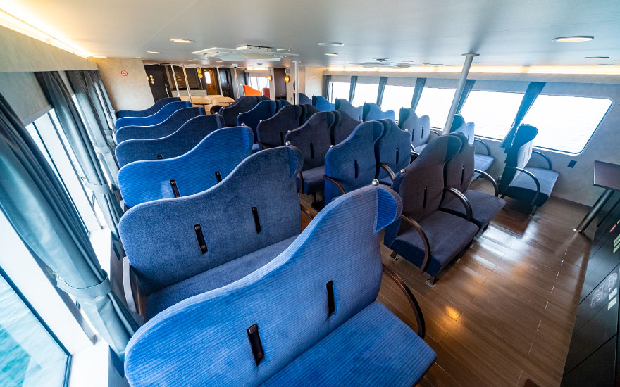 ● Added conveniences include a multipurpose restroom with diaper change station, exclusive ladies’ restroom, direct elevator to the upper deck and other amenities to further enhance passenger comfort on Seto Inland Sea cruises.