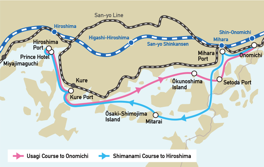 Tobishima Kaido and Shimanami Kaido areas (Geiyo Islands area), which connect Hiroshima Port (Ujina) and Onomichi Port