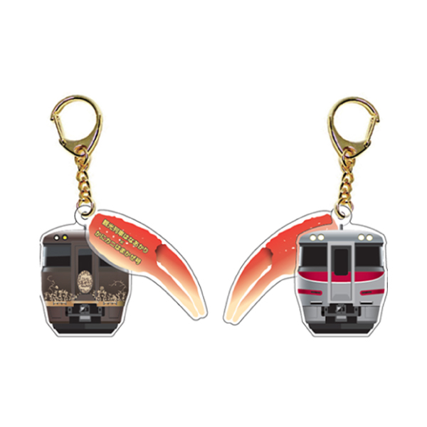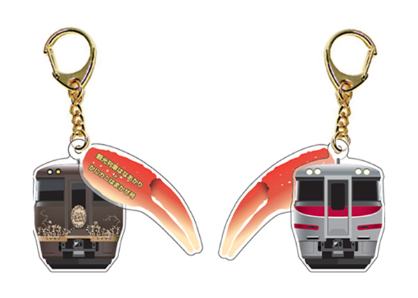 「寺前~和田山」間(下り・上り共通)の車内にて、「はなあかり」車両と「はまかぜ」車両を表裏にデザインしたアクリルキーホルダー(かに爪チャーム付き)をお配りします。