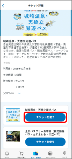 - ※ご利用時は運転士に対象のチケット画面を掲示してください。