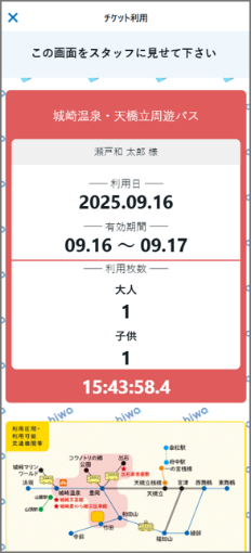 - ※ご利用時は駅係員、または乗務員にチケット画面を掲示してください。