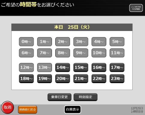 ご乗車を希望する時間帯を選んでください。