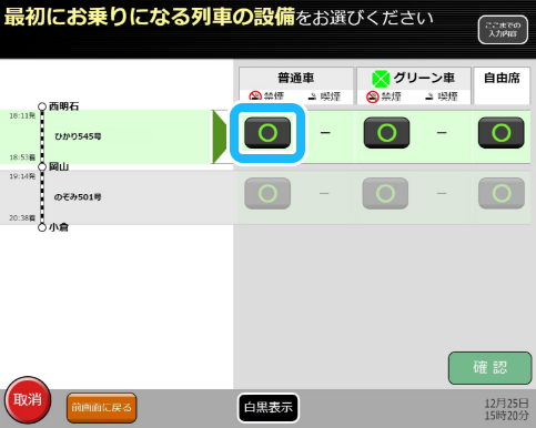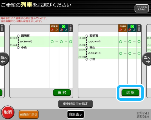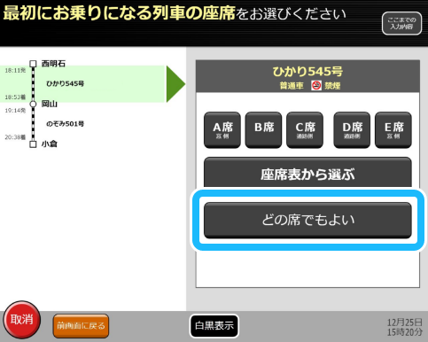 2番目に乗り継ぐ列車についても、同様にお席を選んでください。 -
