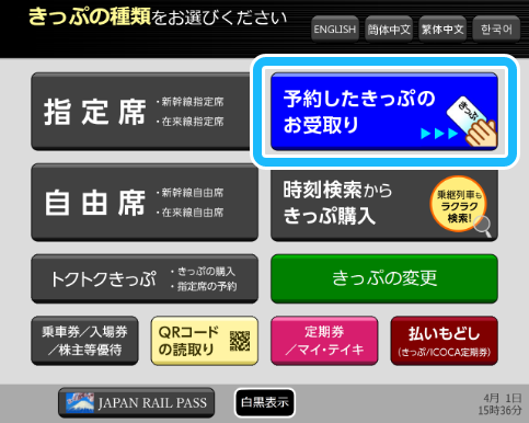 - きっぷの種類や発売枚数によっては、「みどりの券売機」で受け取れないことがあります。