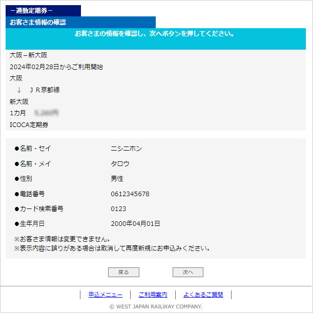 申込登録内容の確認は、定期券利用開始日の9日後まで可能です。
