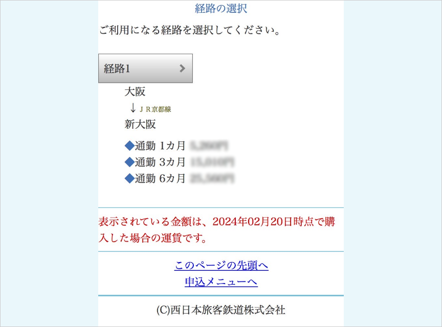 定期券運賃につきましては、この画面でご確認いただくことが可能です。