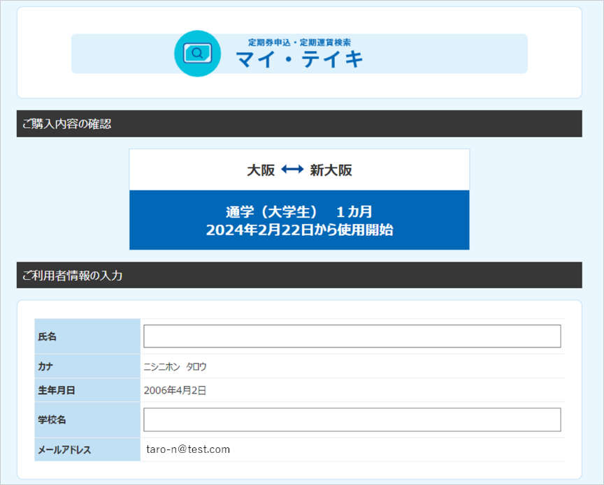 - 定期券の利用開始日、期間(通学証明書原本の場合)