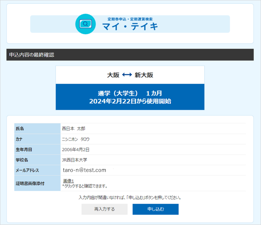 アップロードされた通学証明書等に不足がある場合は、もう一度通学定期券の購入予約が必要となります。
