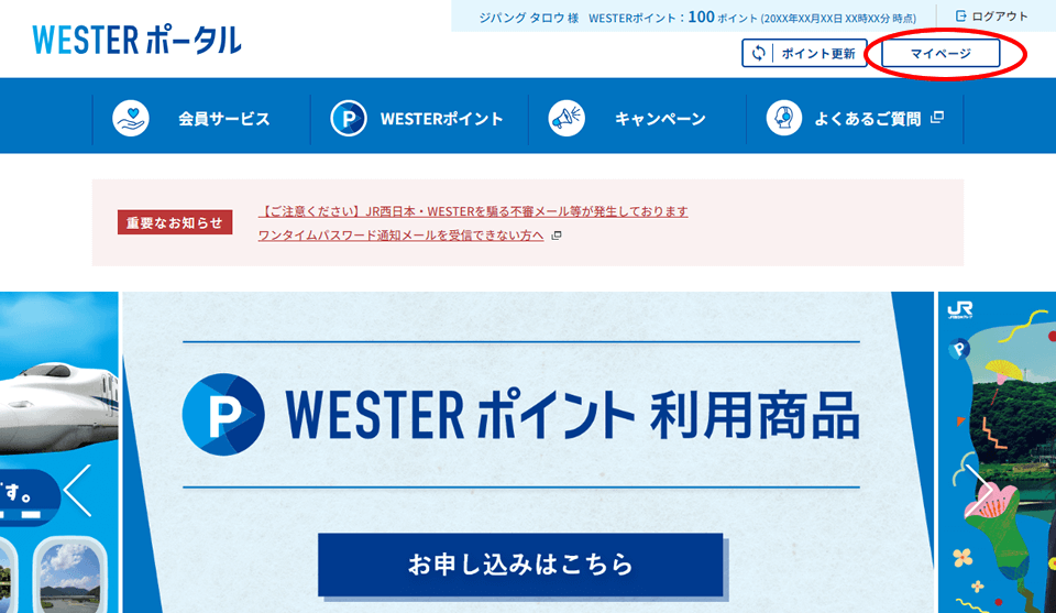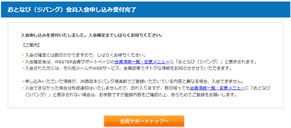※WESTER IDとジパング倶楽部会員番号との結びつけ完了までに数日かかります。なお結びつけ完了のメールは届きません。