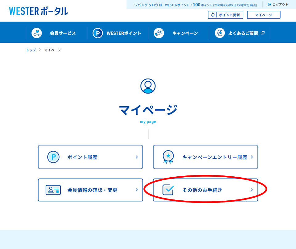 STEP2:ログイン後のマイページから「その他のお手続き」を選択