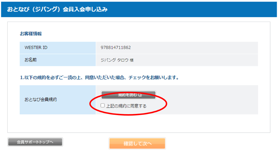必ず「おとなび会員規約」をご確認の上、「上記の規約に同意する」にチェックをしてください。