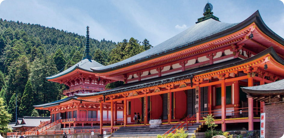 天台宗の総本山で、伝教大師最澄が開いた寺院です。標高848mの比叡山全体を寺域とし、約150あまりの堂塔が点在します。1994年には世界文化遺産に登録。境内からは京都市街や琵琶湖などの絶景を眺めることもできます。